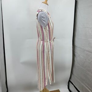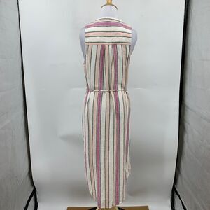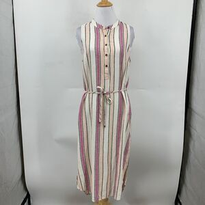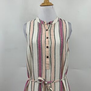 SPLENDID DRESS WOMENS S SMALL MULTI STRIPE LINEN BLEND WAIST TIE CURVED HEM