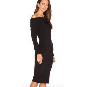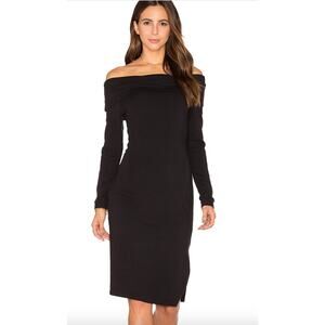 Splendid Dress Womens XS Black Off Shoulder Frenchy Terry Knit Midi SD10840