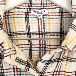Splendid Driftwood Plaid Checkered Button Up Flannel Stripe Blouse Shirt Size XS
