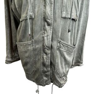 Splendid Dune Faux Fur Hood Sateen Anorak Jacket Army Green Zip Snap Size Medium. Excellent condition and totally on trend! See photos for details and measurements. snap and zip front, snap cuffs, drawstring hem, removeable faux fur hood, A distressed wash gives a well-worn look to this perfectly oversized Splendid jacket. Green sateen (91% Rayon, 7% Polyester, 2% Spandex). Jacket. Oversized fit. Exposed front zipper and button closure. neutral, boho, grunge, casual, olive, soft, light