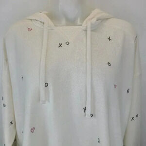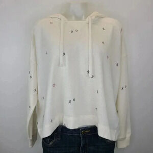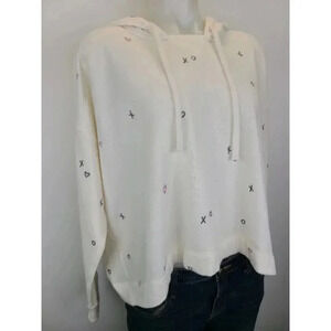 Splendid Embroidered Heart XO Snowland Ivory Hoodie Sweatshirt Oversized Small