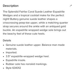 Splendid Fairfax Coral Soft Suede Leather Espadrille Wedge Heel