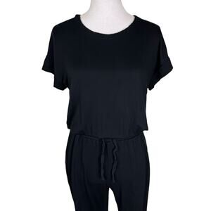 Splendid Flora Soft Black Knit Short Sleeve Elastic Waist Jogger Jumpsuit Lounge