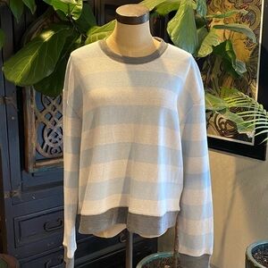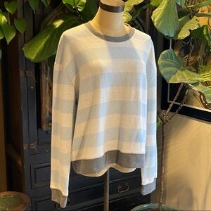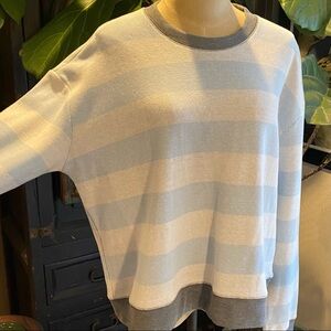 Splendid French Terry Baby Blue Stripe Crew Pullover Jumper. Heavier weighted sweatshirt soft terry.