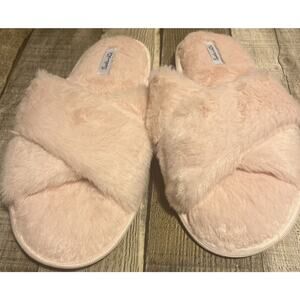 Splendid Fuzzy Faux Fur Crisscross Slippers Pink Size S/M