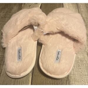 Splendid Fuzzy Faux Fur Crisscross Slippers Pink Size S/M. New in bag.