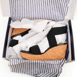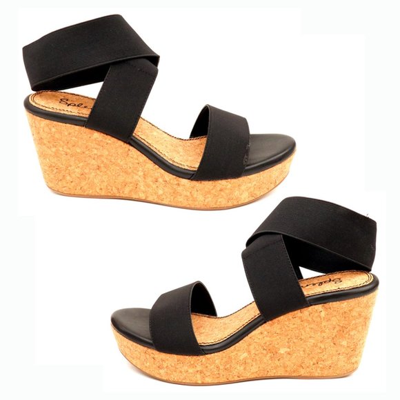 Brand new wedge-type sandals with elastic straps by Splendid. Height is 3" on a cork wedge. Comes in box with original packing.