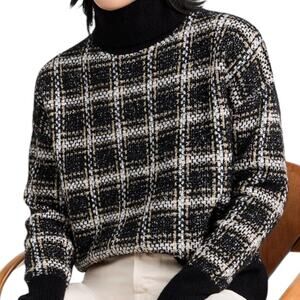 Splendid Ginny Plaid Metallic Turtleneck Sweater Wool Blend NEW Size Medium