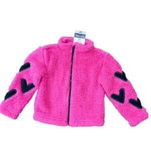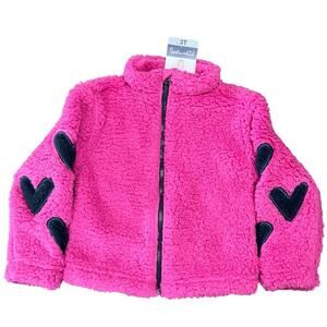 Splendid Girl’s Jacket Pink Fleece Navy Blue Heart Details Size 3T NWT