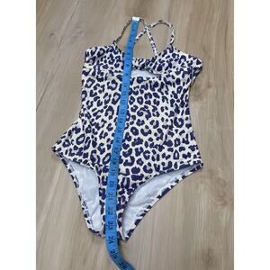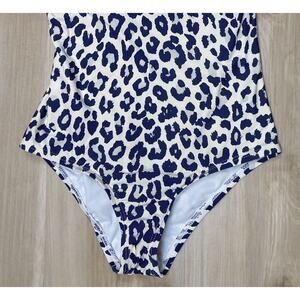 Splendid Girls sz 12 One Piece Swimsuit Navy Blue Leopard Beige Cream 52537