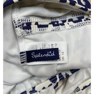 Splendid Girls One-Piece Swimsuit in size 12. Excellent condition. No signs of wear. The base color is beige or cream (not white) and the accent color is blue. I would describe the print as leopard or cheetah print. The style number is 52537. Measurement pictures in slideshow. Thanks for looking!