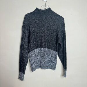 Splendid Gray Color Block Cable Knit Turtleneck Sweater