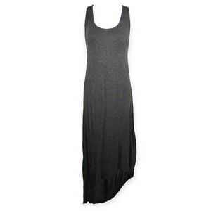 Splendid Gray Gold Jersey Dress Asymmetrical Soft Knit Lightweight Midi M