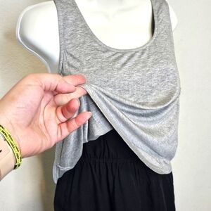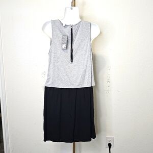 Chic layered dress by Splendid. Features a gray top layer over a black skirt. Perfect for casual outings.