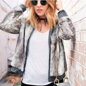 Splendid Gray Taupe Long Sleeve Faux Fur Bomber Jacket Zip Up Small