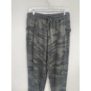 Splendid Green Camo Joggers Elastic Waist Front Pockets Women's Large