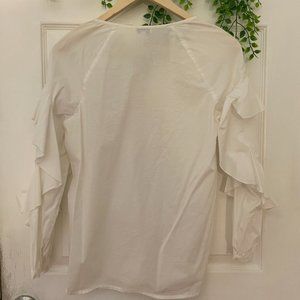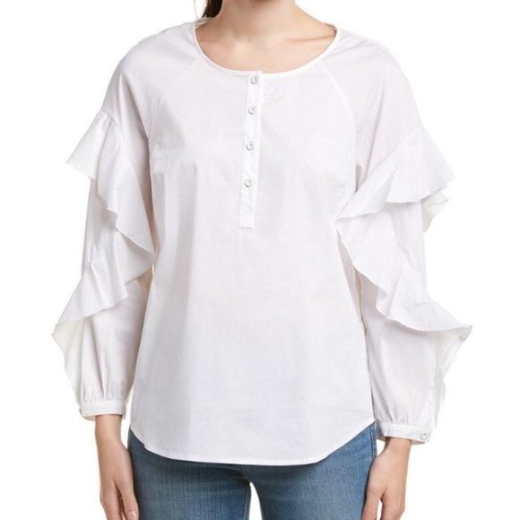SPLENDID WOMEN RUFFLE LONG SLEEVE CREW NECK WOVEN SHIRT WHITE