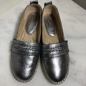 Splendid Jaime Metallic Silver Slip-On Espadrille Shoes 7 Fringe Women’s