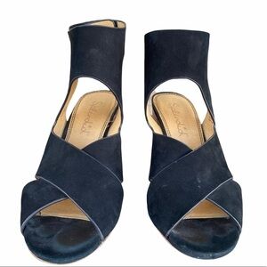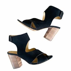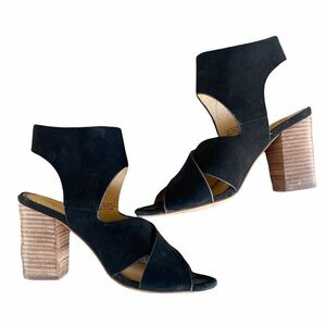 Splendid Jerry Black Suede Ankle Cuff Chunky Stacked Heel Sandal Size 8 Open Toe