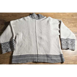 Splendid Kenny Cardigan Printed Geo Boarder Cotton Blend White Sand Large