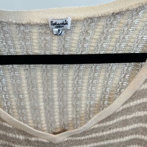Light and airy knit short sleeve top from Splendid. Sleeves hit at elbows and the body hangs loose. A favorite light top for spring and summer when you want a little bit of arm coverage.