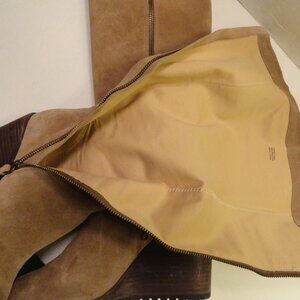 Splendid tall wedge heel suede boot, ladies/women's size 10. Light brown in color, very good to excellent condition. These boots were great, but I just don't dress up often enough to keep them in my closet. Worn just a few times. Leather uppers, zippers are in working order.