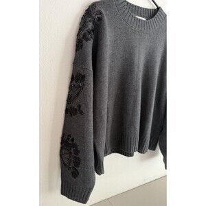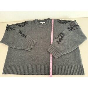 Splendid Leanna Sequin Embroidered Wool Blend Sweater Women Size S Heather Gray