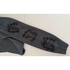 Pre-owned item in great condition. Soft stretchy fabric. Oversized look. Please see pictures for more details and approximate measurements. Color is heather gray with black sequins and embroidery on the sleeves.