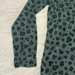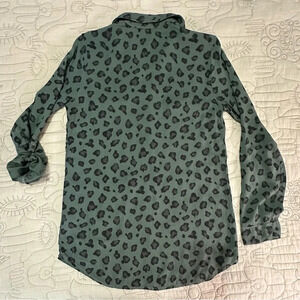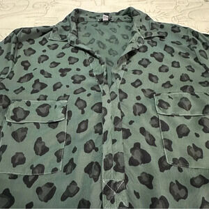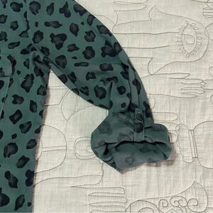 Splendid Leopard Rayon Pullover Long Tab Sleeve Green Medium Animal Print