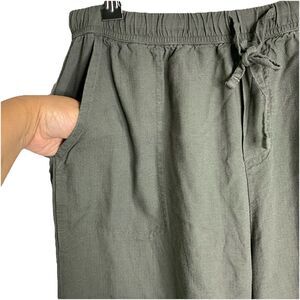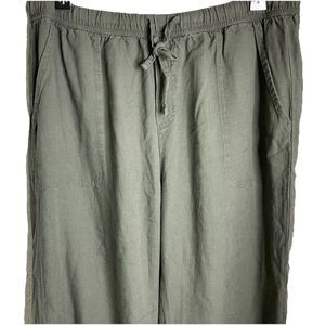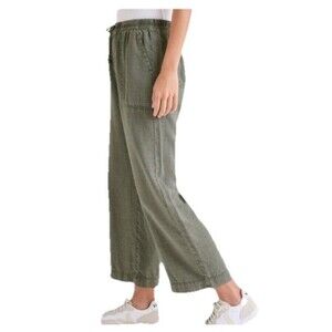 Splendid Linen Blend Cropped Pants Women’s Large Army Green Wide Leg Pull On