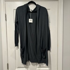 Splendid Longline Hooded Open Front Cardigan Sweater