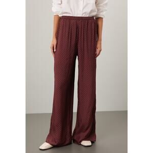 Splendid Lumi Maroon Wide Leg Geometric Print Satin Pants Size XL