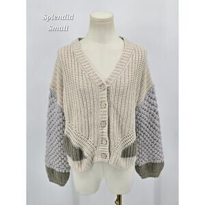 Splendid Margo Cardigan – Chunky Knit Colorblock Bubble Sleeve - Small