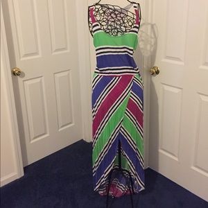 This is a super cute Slpendid cotton Maxi Dress with slit in front and longer in the back and has a built in slip that is above the knee. This is great for summer.