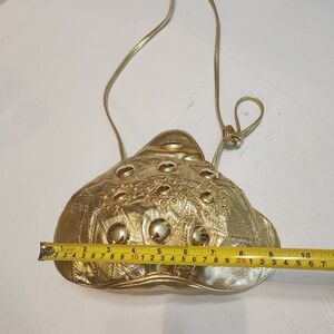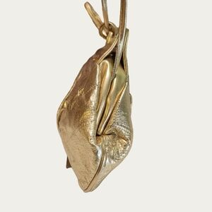 Shimmering metallic gold finish. Stylish crossbody design. Perfect for adding glamour.
