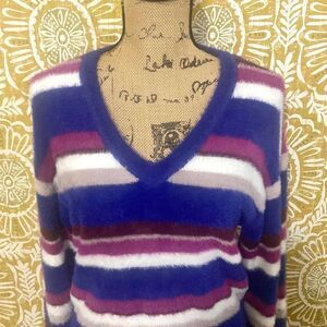 Splendid Multicolor Striped Fuzzy Eyelash Soft V-Neck Sweater size XS