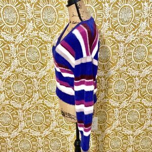 Splendid Multicolor Striped Fuzzy Eyelash Soft V-Neck Sweater size XS