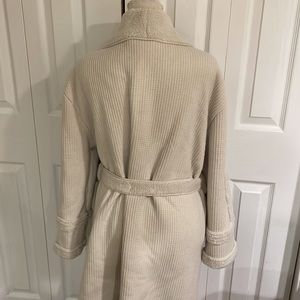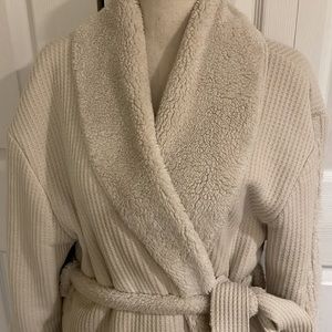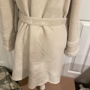 Beautiful oatmeal cozy robe nwot- gorgeous! Warm and so comfortable. Fully lined with cozy soft fur. Detachable belt. Machine washable