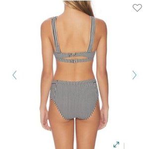 Splendid NWT S Line in the Sand Retro Bikini Bottoms Black White Stripe