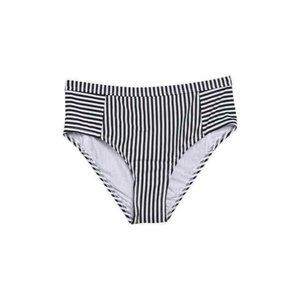 A black and white striped print adds signature detailing on this retro high waisted bikini bottom.