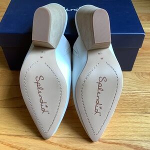 Splendid Nala Pointed Toe Wood Block Heel Leather Mule Snow White SZ 9.5