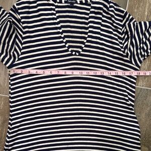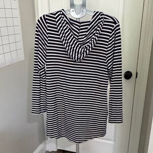 Stylish black and white striped hoodie. Features a comfortable fit. Perfect for casual wear.