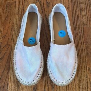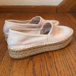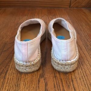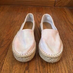 Brand new (without tags or box) Splendid Tie Dye Canvas Espadrille Slip On Flats. Closed toe and heel canvas upper w/subtle light pink/ blue tie dye. Padded insole with top stitching detail around midsole 1.5" platform. Jute covered base. Rubber man-made outsole Everyday, lightweight.