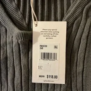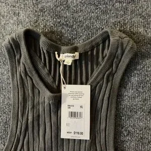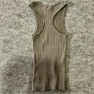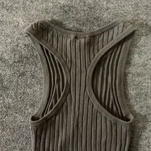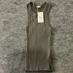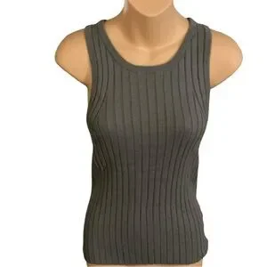 Fitted rib knit tank. Scoop neckline and wide straps. Stretchy, body-skimming silhouette. Simple, versatile design for layering or wear alone.