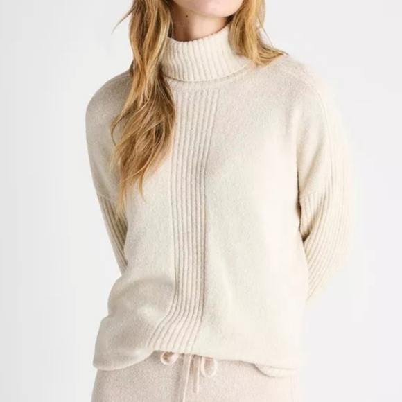 Sweater is made from the same fuzzy sweater blend that you love to wrap up in while couch-lounging on movie night. Its elevated design (a turtleneck and stunning ribbing) means you can wear it out of the house.