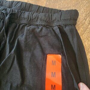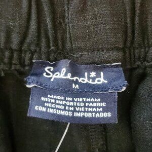 Splendid Pants Womens Medium Black Linen Cropped Wide Leg Drawstring 1767950