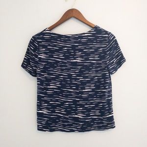 - navy and white pattern - short sleeve - crew neck - boxy style - slightly cropped