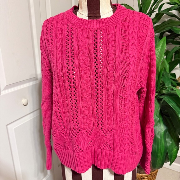 Splendid Pink Drop Needle Chunky Cable Knit Pullover Sweater Boho Sz XS