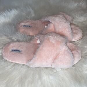 Splendid Pink Faux Fur Fuzzy Slippers M/L New without tags Ships fast! Ships fast! Pet free home