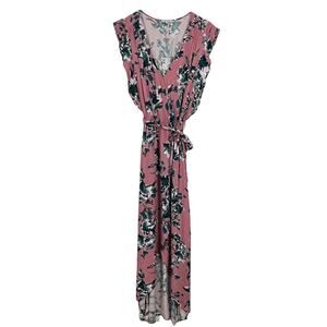 Splendid Pink Floral Faux Wrap High Low Maxi Dress Size Small